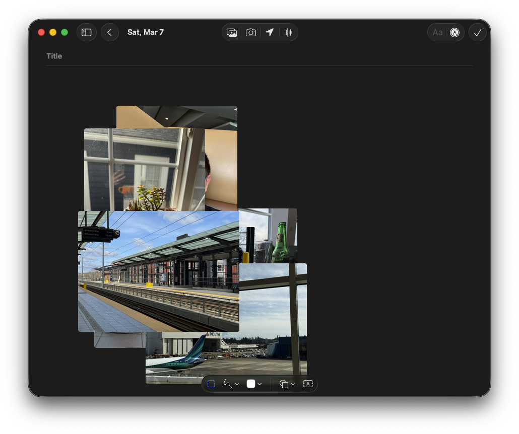 The MacOS Journal app feels so half-baked. I thought I’d try it for a travelogue of my past week, dragged some photos to it, and it just dumps them in a pile. There’s no arranging, scaling for layout of landscape and portrait, nothing. C’mon, Apple, I’m trying to not shell out for Day One again, here.